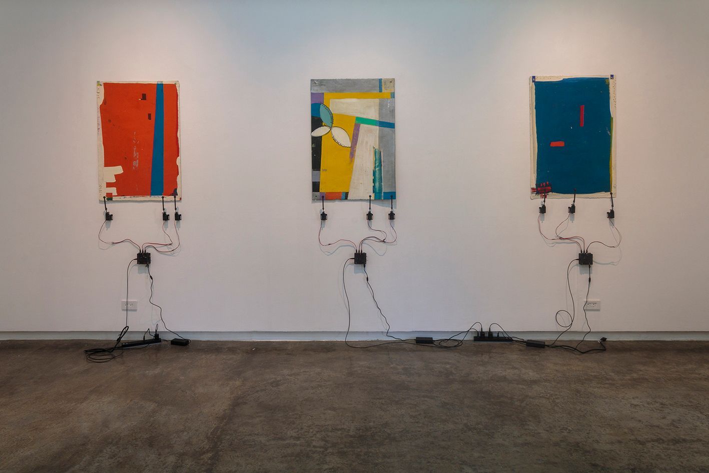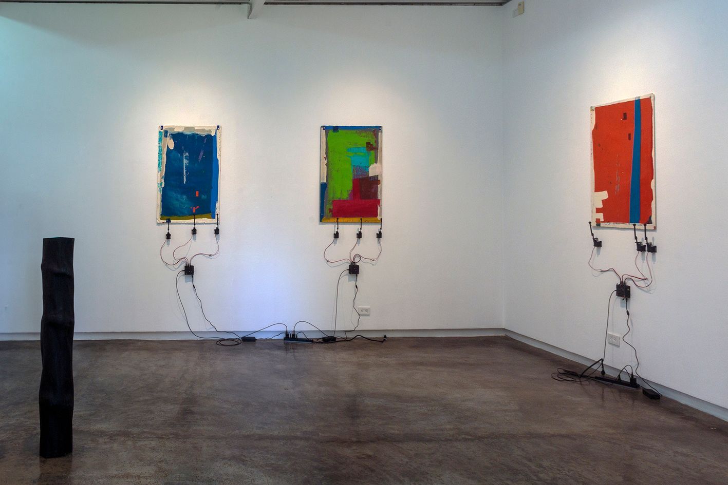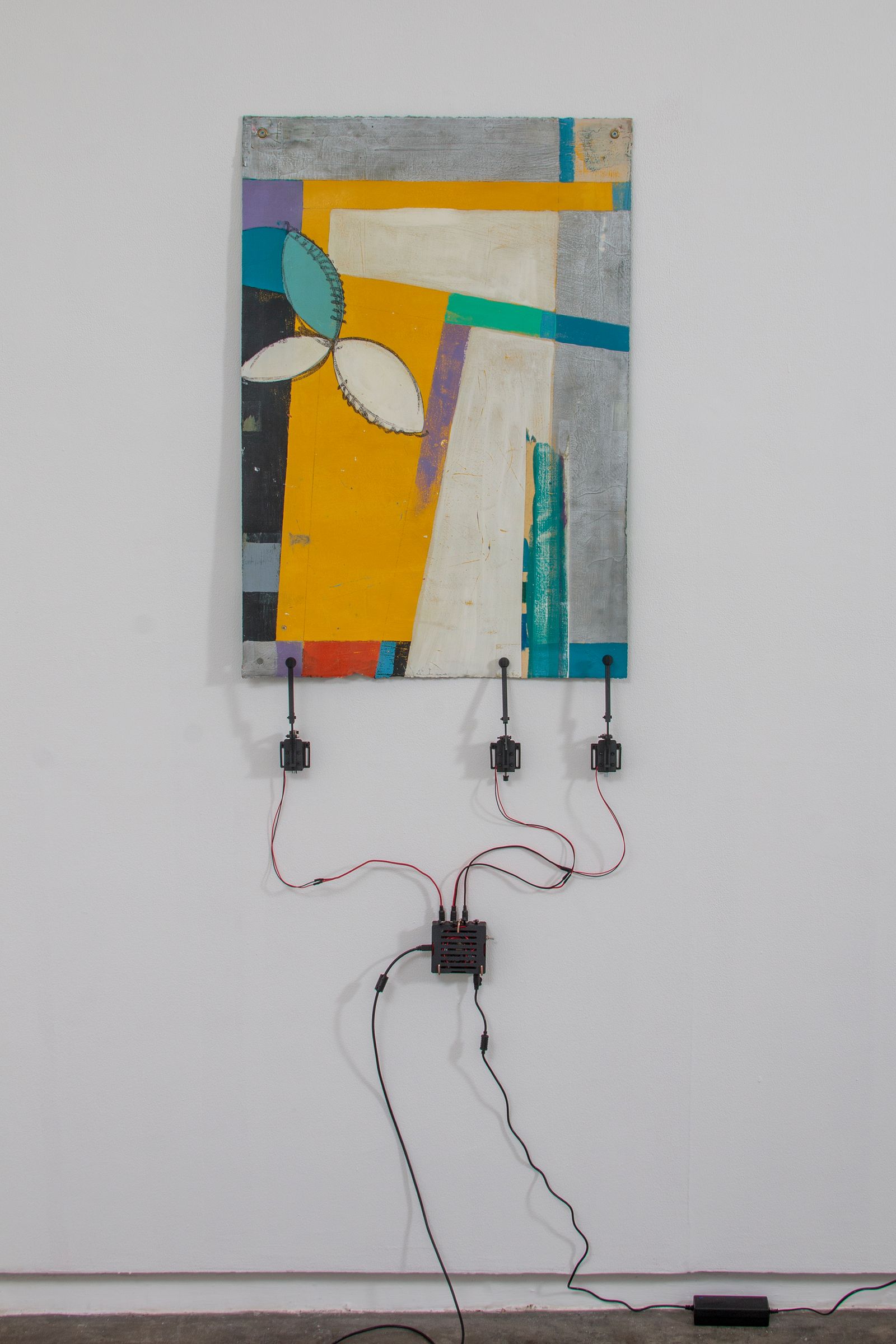 Audio Installation composed of 18x programmed solenoids from Miguel La Corte, 6x paintings from Pepe Lopez, 1x Palitero drum from luthier Armando Pantoja.