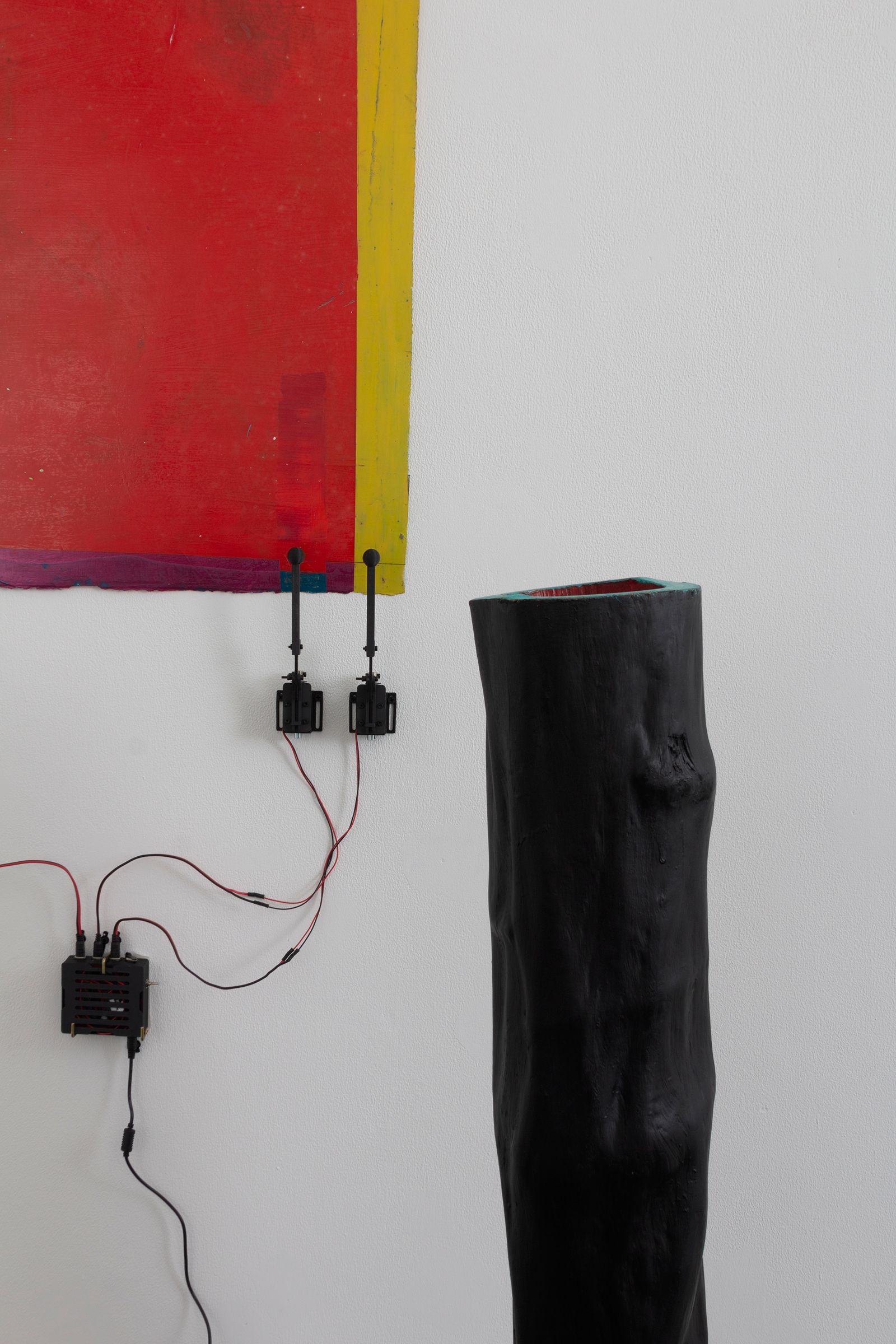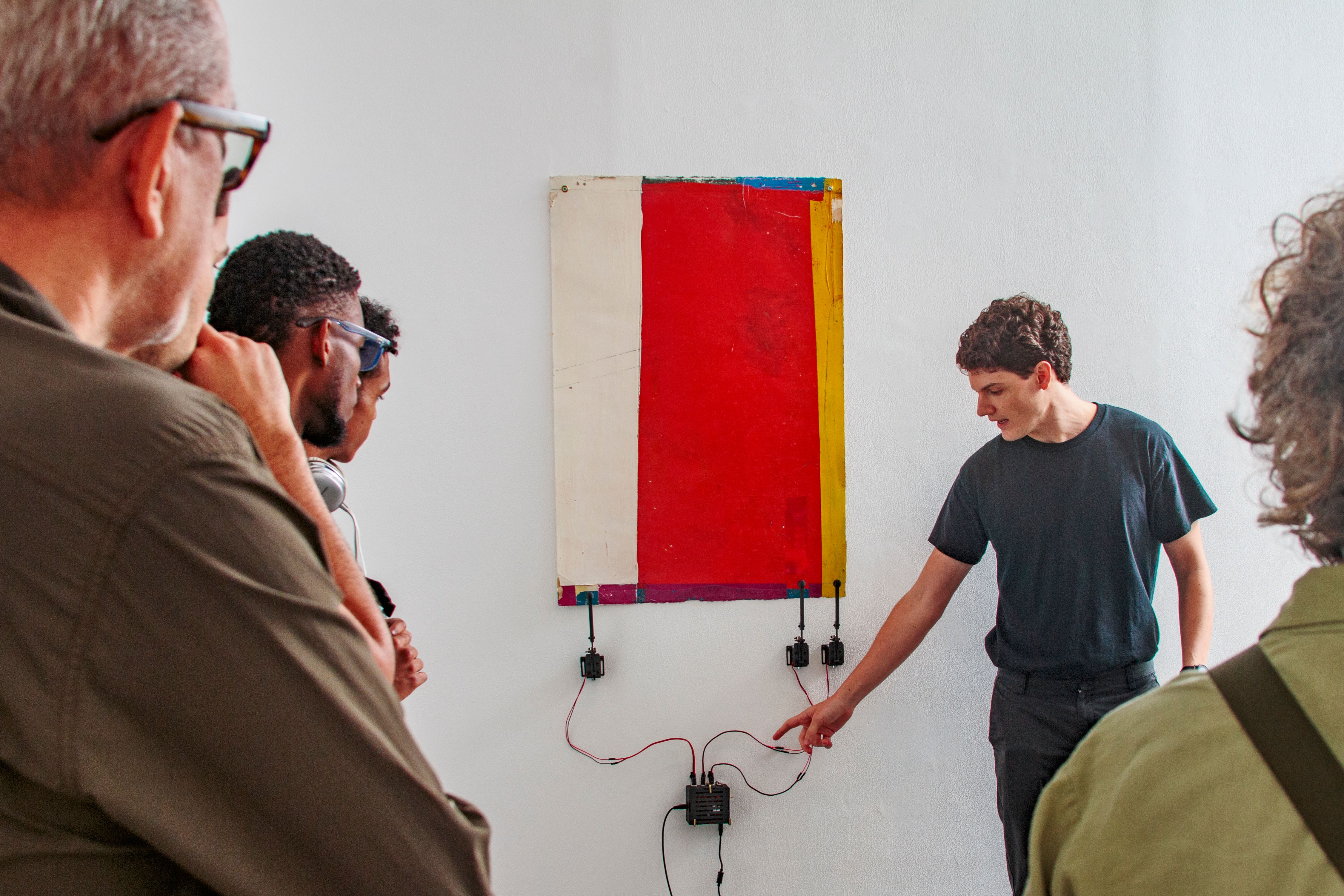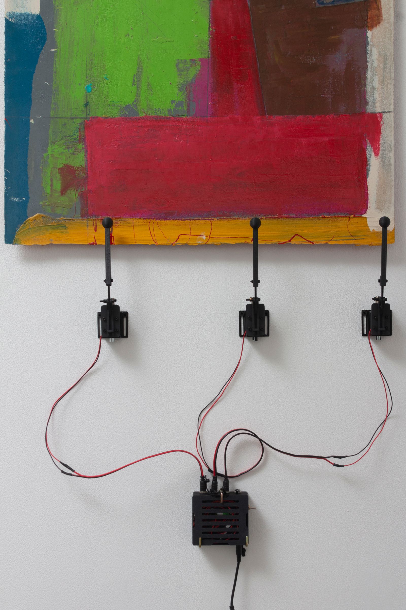 Audio Installation composed of 18x programmed solenoids from Miguel La Corte, 6x paintings from Pepe Lopez, 1x Palitero drum from luthier Armando Pantoja.