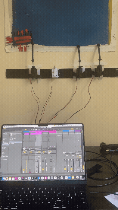 From the initial sketches of drum paintings made by Pepe Lopez in his studio, the first plans of the rhythm system through solenoids emerge.