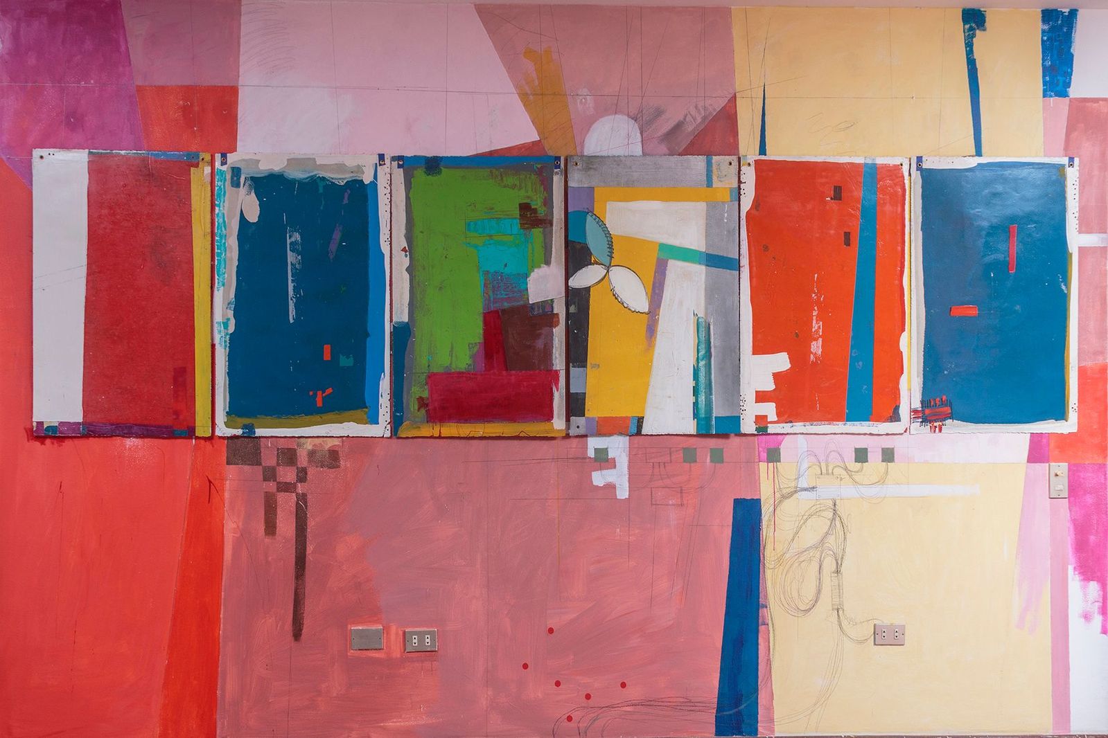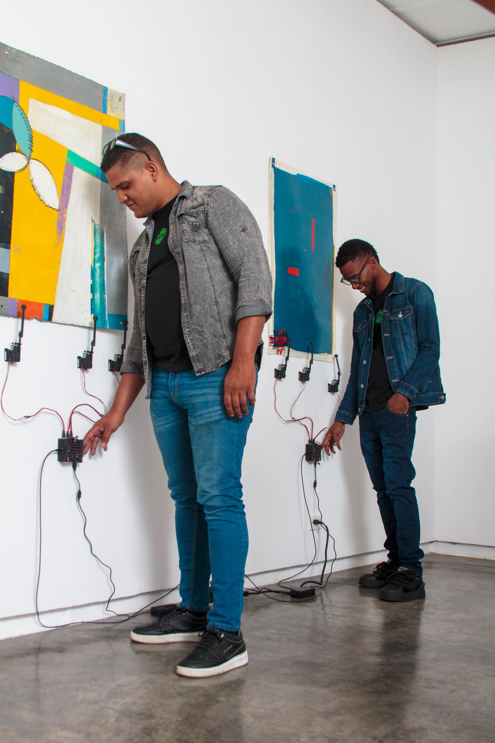 The installation is based on a generative algorhythm made by musician Miguel La Corte, that dissects these two traditional rhythms, and depicts them -uniquely within each painting- in a de-generative fashion over 12 minutes cycles.