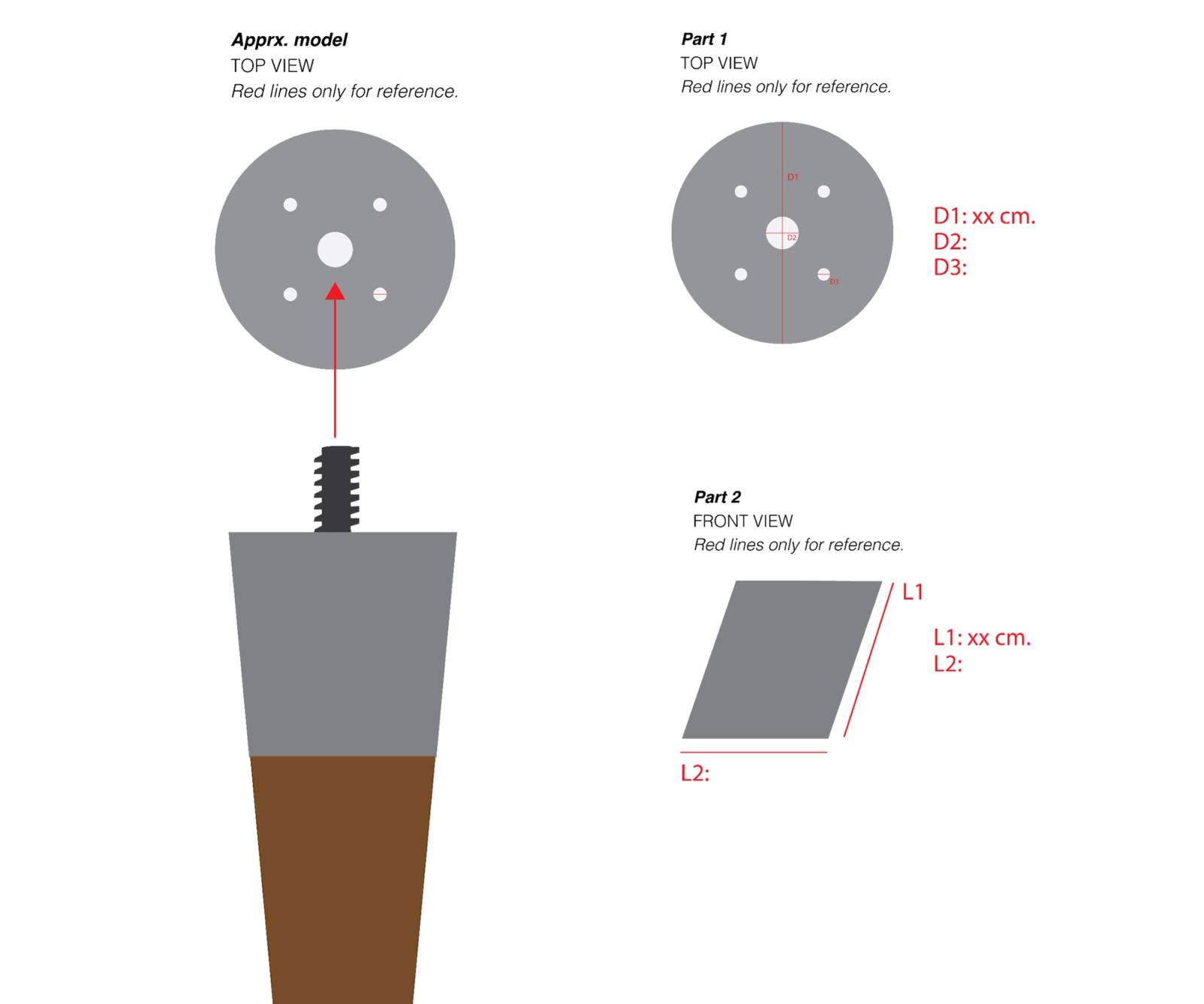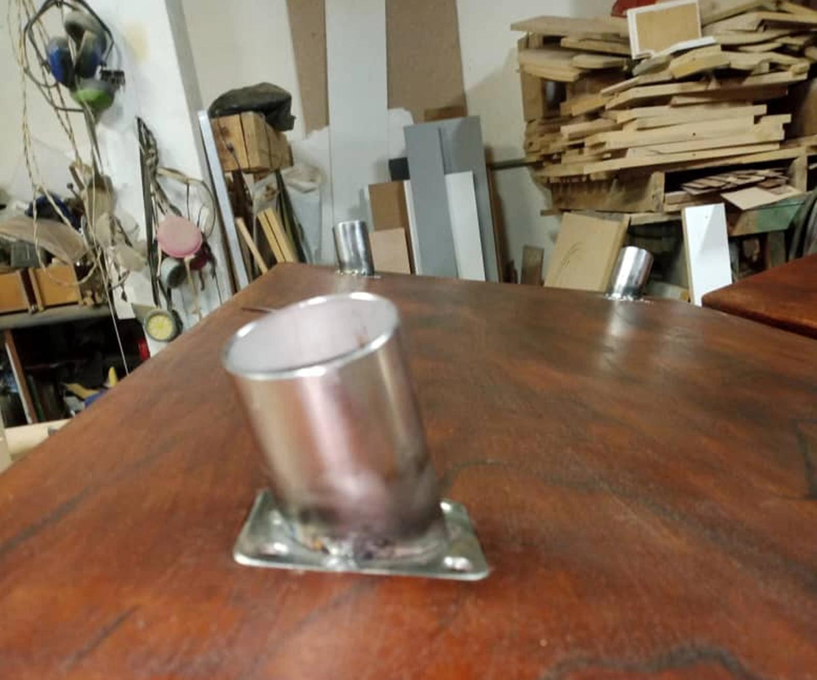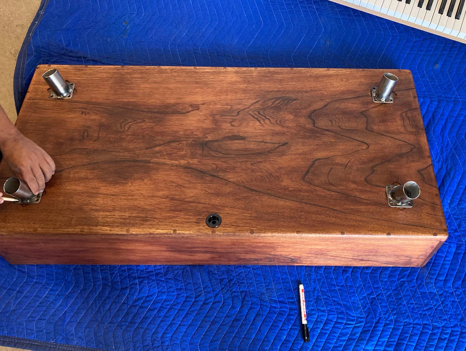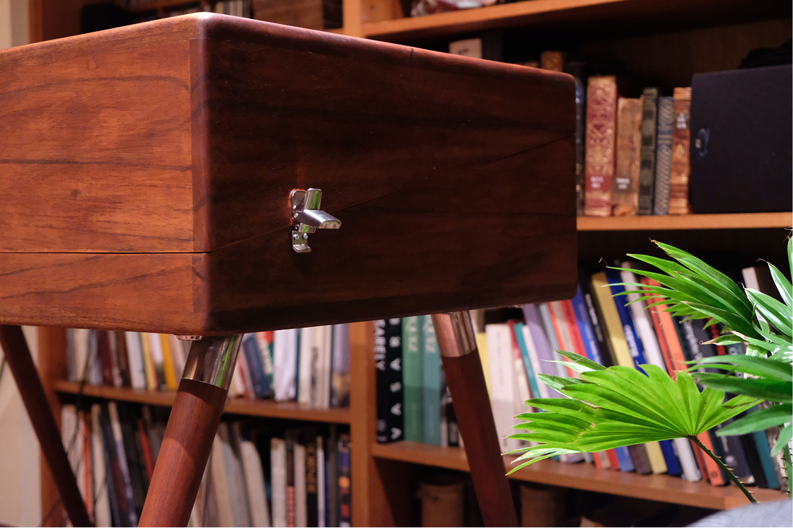 A full new set of legs was made with its respective steel mounting bracket and leg cap (both chromed). Wood case was designed to enable 2 different leg configurations: one were the legs face front and outwards, and another were the legs face sideways.