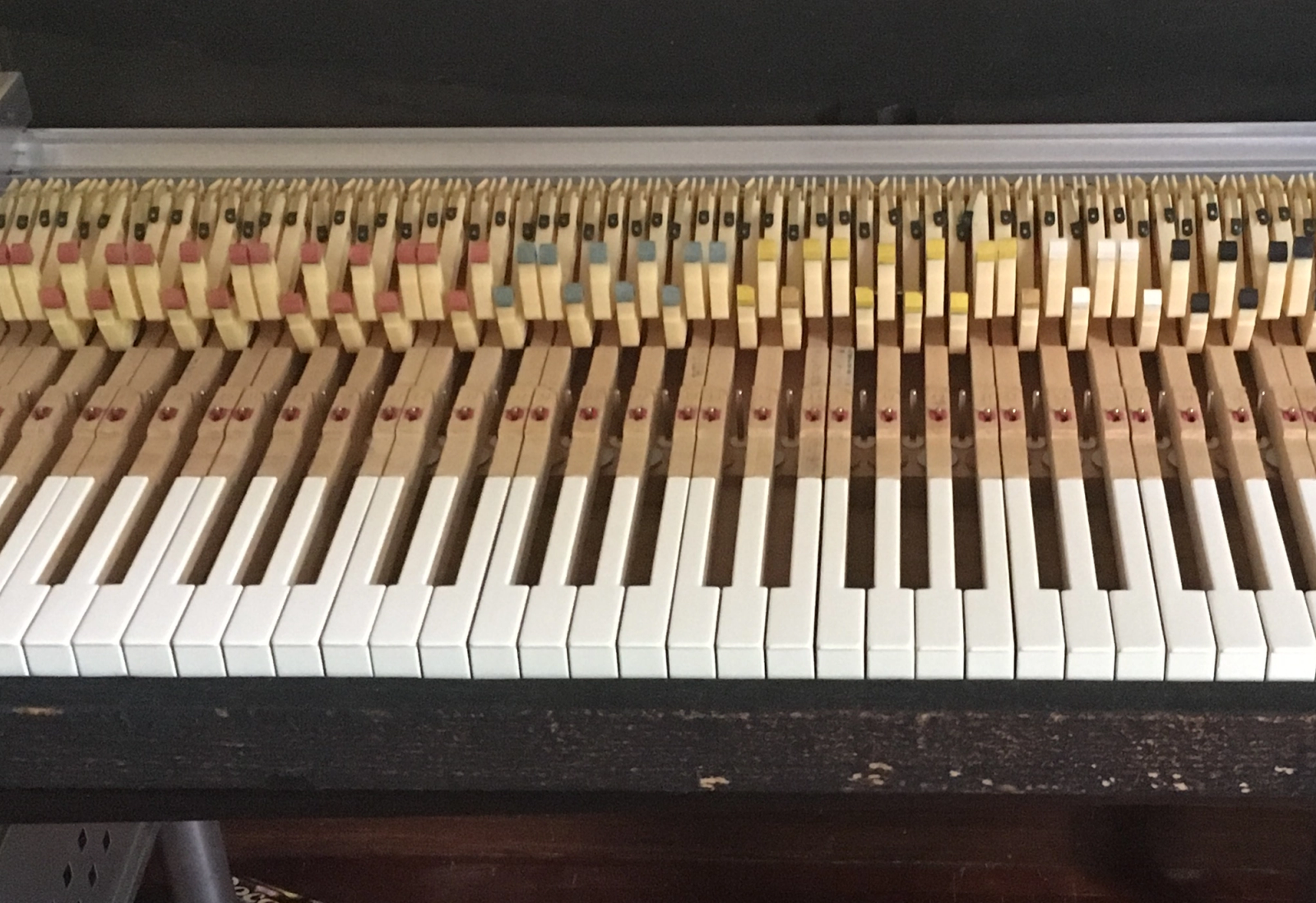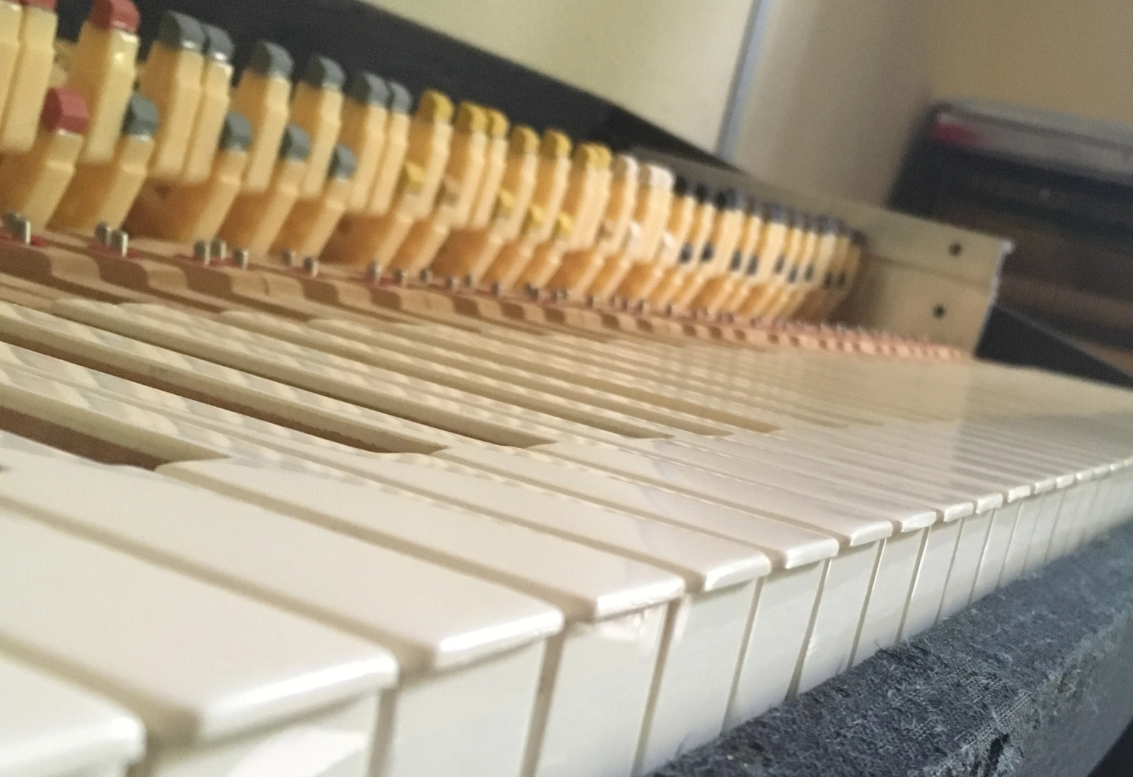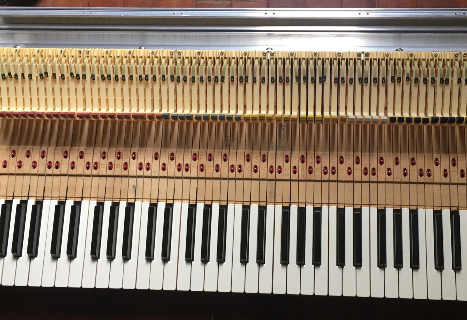 Piano keys height was fully re-adjusted following the manual best practices and making sure there are no uneven spaces in the harp frame.