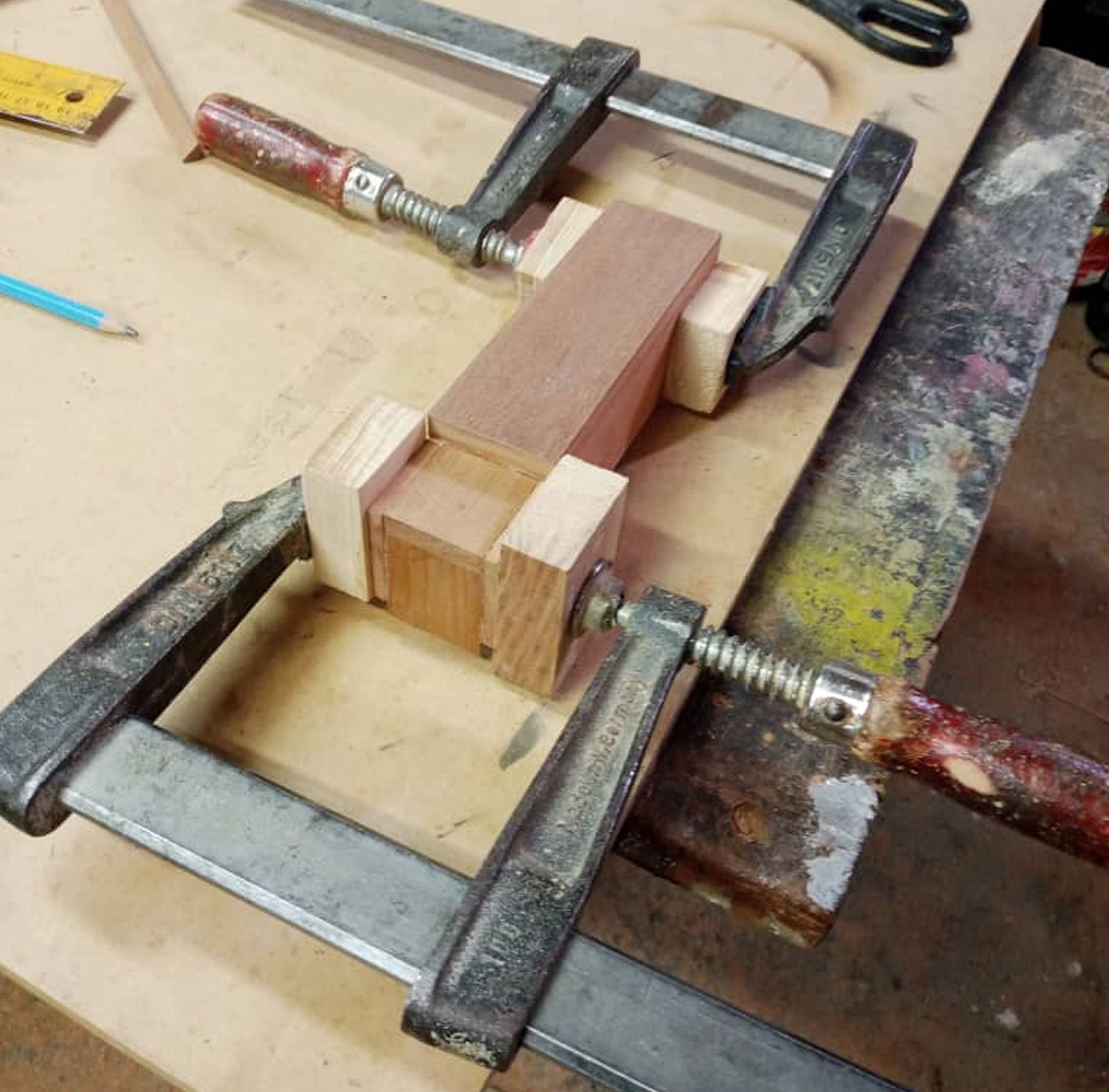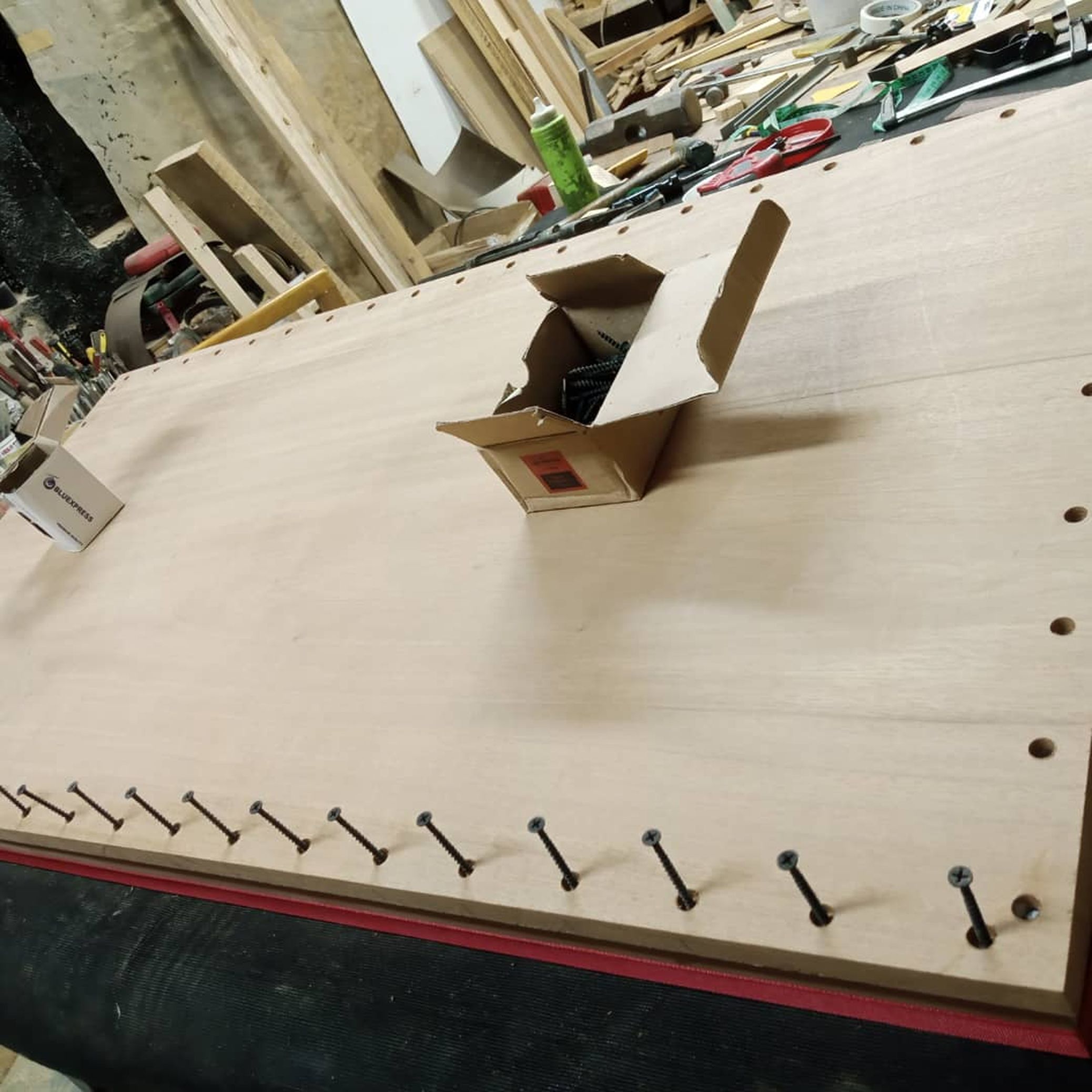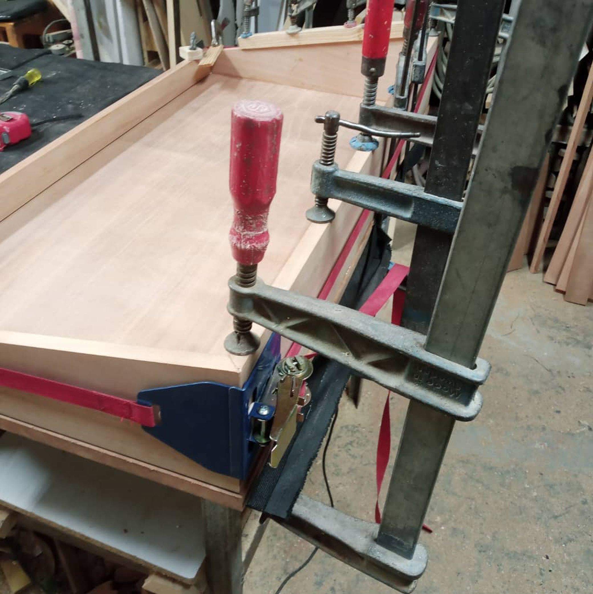 New cedar wood case and cheek blocks fully assembled and tinted with special beeswax. Finding the right wood took approximately a year, including many attempts of wood finishing and preservation tints. At the end, cedar was chosen due to its acoustic properties and beautiful ramifications.