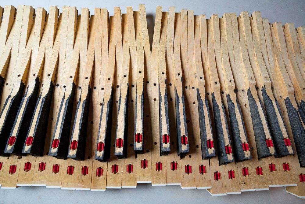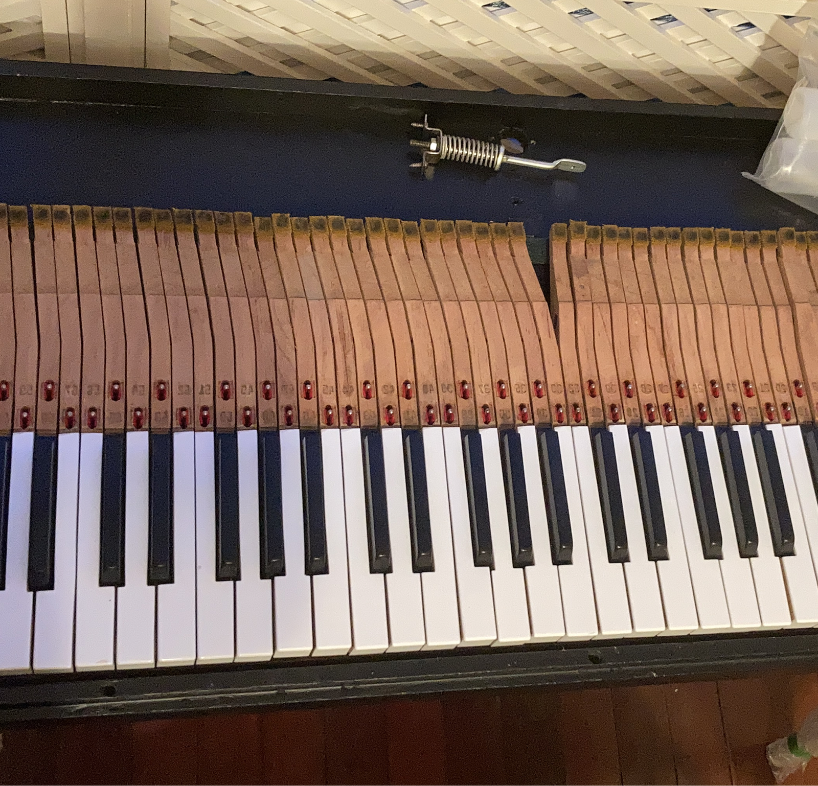 After the keys were cleaned, polished and properly aligned, the piano damper section was thus re-assembled.