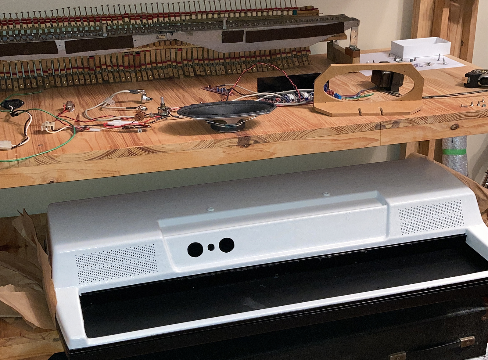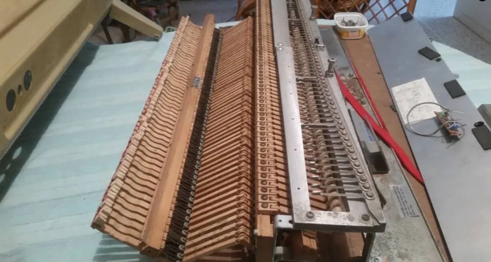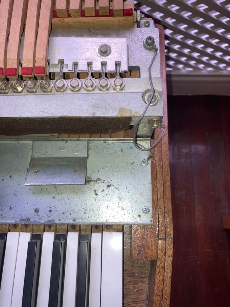 The initial condition presented many challenges: beaten up hammer tips, non-original speakers and electronics as well as dead notes, worn out face plate and a rusty damper mechanism.