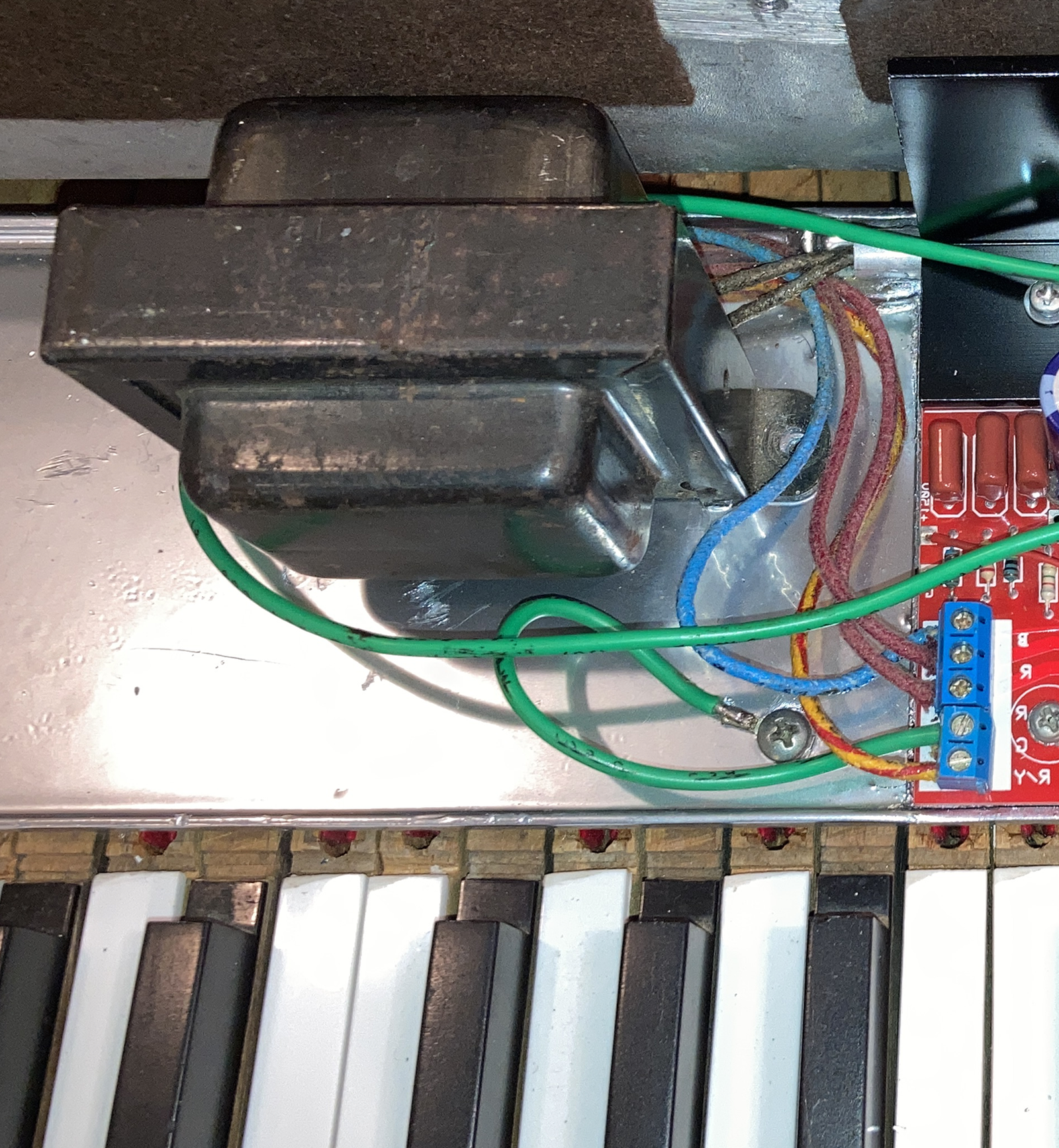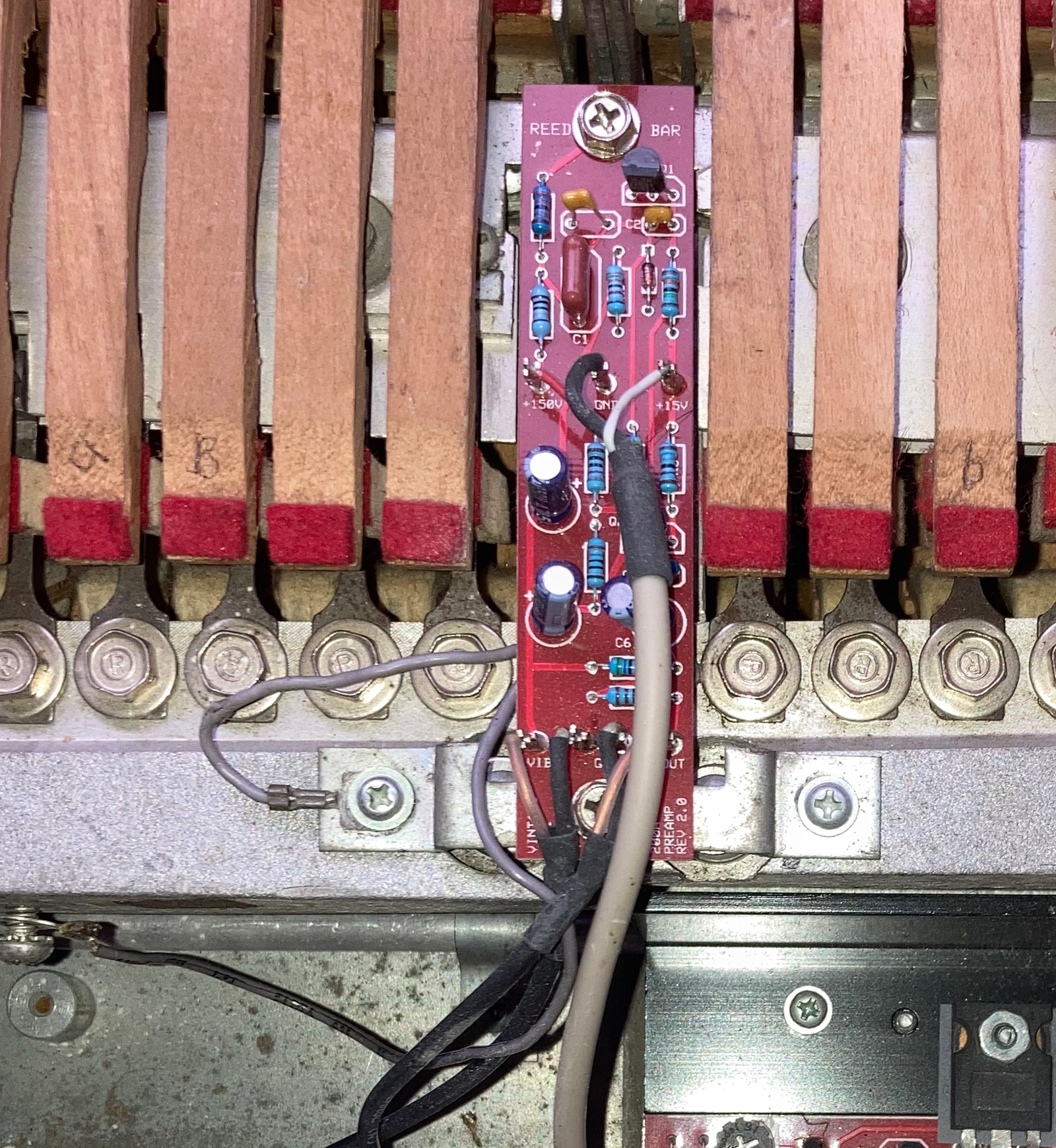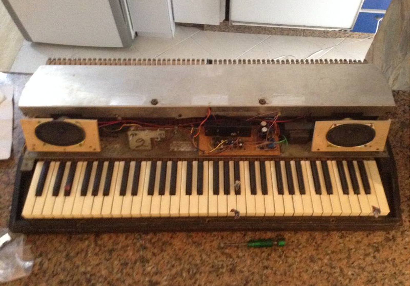 The initial condition presented many challenges: beaten up hammer tips, non-original speakers and electronics as well as dead notes, worn out face plate and a rusty damper mechanism.